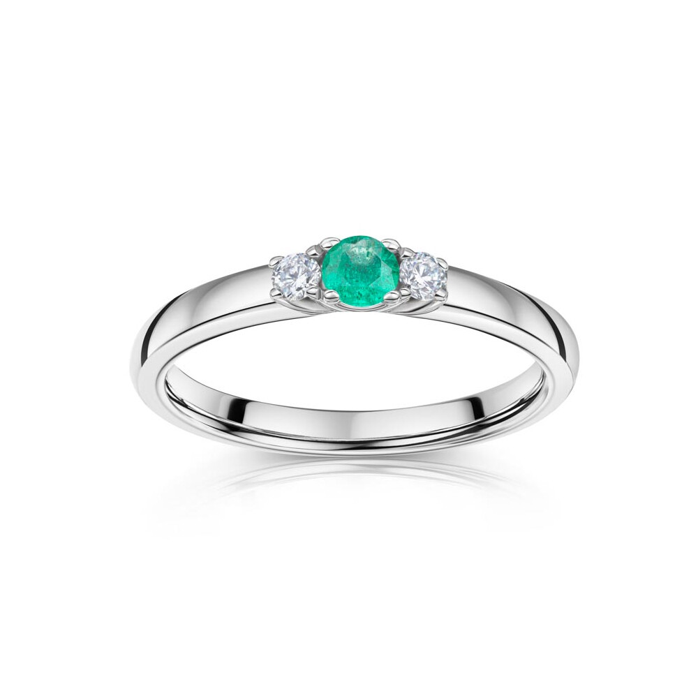 Ein wunderschöner Antragsring aus 925er Silber mit einem grünen Smaragd (∅ ca. 3,4 mm) Farb-Edelstein in der Mitte des Rings eingefasst. Zwei weiße funkelnde Zirkonia-Steine begleiten den Smaragd auf wunderbarer Weise und verleihen dem Ring zusätzlichen Glanz. Ein schönes Schmuckstück welches perfekt für den besonderen Moment der Verlobung geeignet ist. Der Ring ist in verschiedenen Größen erhältlich. Hervorragende Handwerkskunst Made in Germany!