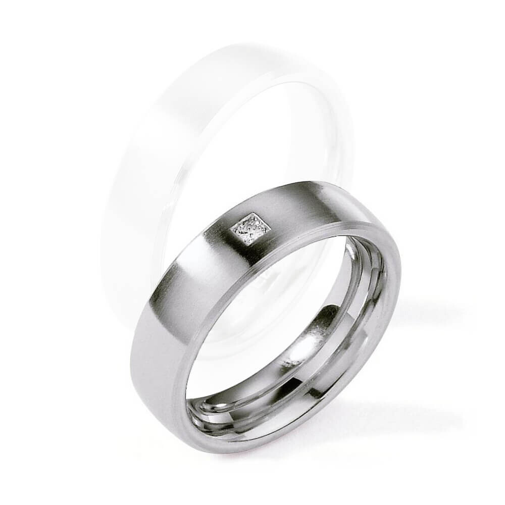 Ein Damenring aus längs mattiertem Edelstahl mit einem echten Diamanten veredelt. Für einen optimalen Tragekomfort ist der Ring aus der White Style Steel Brillant Kollektion innen bombiert (abgerundet).