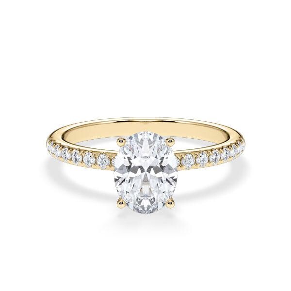 Entdecken Sie den exquisiten Verlobungsring Veiled Halo aus warmen Gelbgold mit einem Lab-Grown Diamant im Oval-Schliff als Center-Stein. Dieser einzigartige Ring vereint zeitlose Eleganz mit modernem Design und ist die perfekte Wahl für den besonderen Moment. Der Hauptstein, ein atemberaubender Lab-Grown Oval-Diamant, wird von einem versteckten Halo aus echten Diamanten umgeben, die dem Ring zusätzlichen Glanz und Brillanz verleihen.