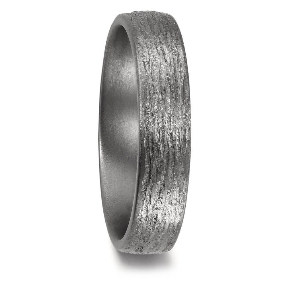 Hochwertige Eheringe aus Tantal mit strukturieter Oberfläche. Der Damenring ist dabei mit einem funkelnden blauen Diamanten (ges. 0,050 ct.) besetzt. Beide Ringe, welche auch als Partnerringe getragen werden, sind innen bombiert und außen gerade. Das sorgt für ein angenehmen Tragegefühl. Tantal ist ein sehr kratzfestes Material welches zudem äußerst unempfindlich gegenüber Tragespuren ist. Gern gravieren wir diese Ringe mit Ihrem Wunschtext.