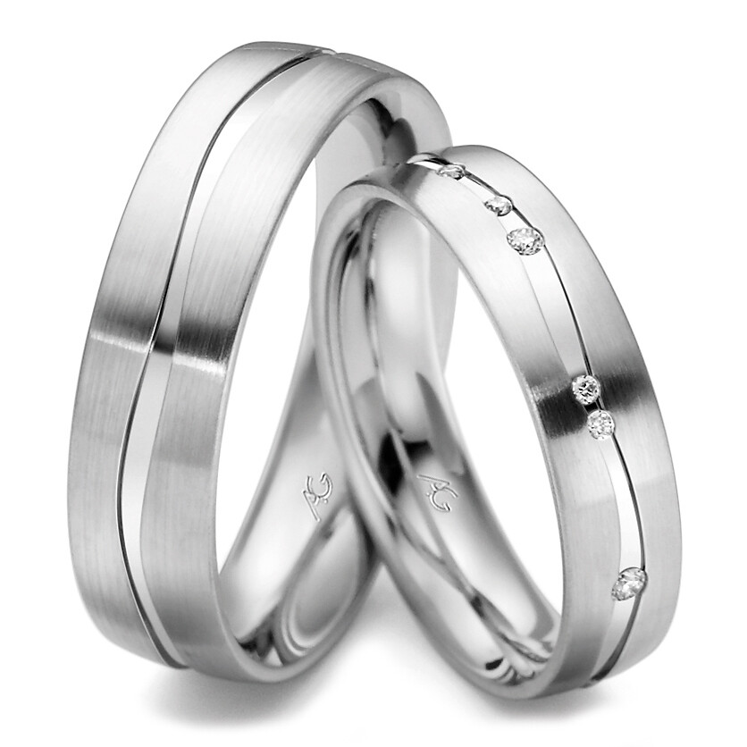 Moderne, elegante Trauringe 4/28421/5 & 28421/5 der Firma August Gerstner aus Platin.
