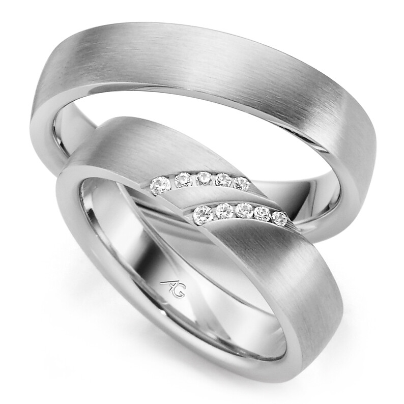 Moderne, elegante Trauringe der Firma August Gerstner aus Platin.