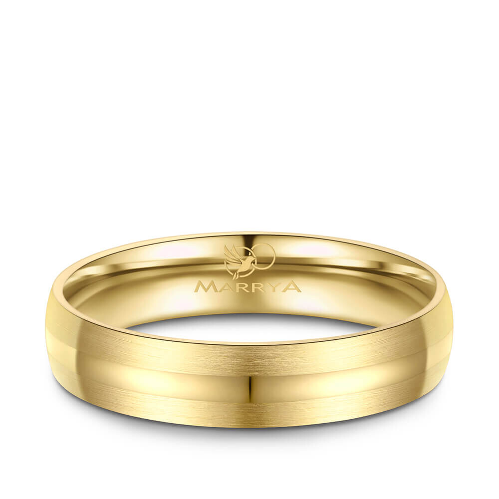 Wunderschöner Ring aus Edelstahl mit erstklassiger 14K Gold-Beschichtung. Das Modell ES-27 ist längs mattiert. Dieser Herrenring ist mit einem mittig angesetzten polierten Band verziert. Durch ihre leichte Bombierung (an der Ringinnenseite abgerundet) sitzt der Ring sehr bequem am Finger.