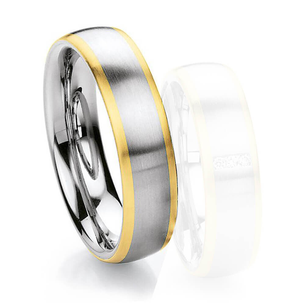Ein wunderschöner Herrenring aus Edelstahl mit 585er Gelbgold an den Seiten. Für besseren Tragekomfort ist dieser Ring innen bombiert (abgerundet)