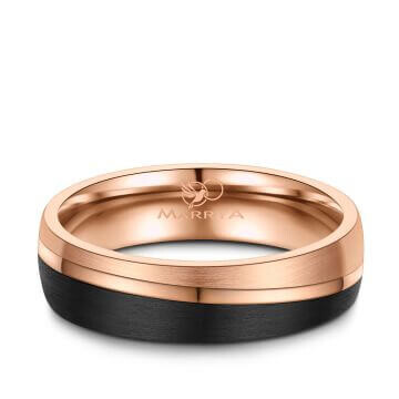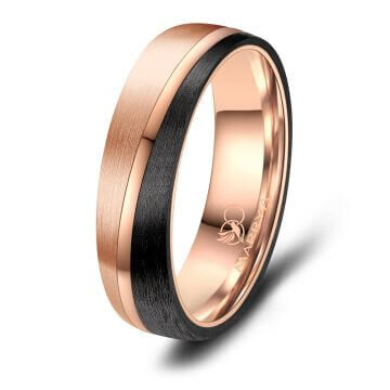 Ein wunderschöner Ring aus Titan (innen glänzend) rosé vergoldet und hochwertigem Finecarbon. Der Ring ist frei von scharfen Kanten sowie innen bombiert, für optimalen Tragekomfort.