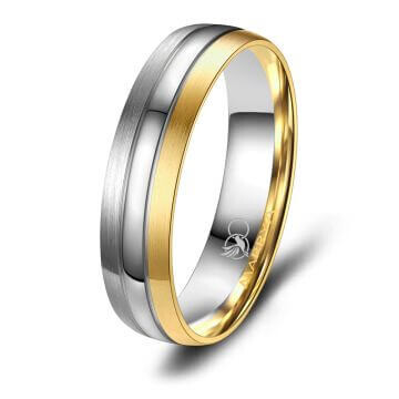 Ein Ring aus Titan mit Gelbgoldplattierung und gebürsteter Oberfläche. Dieser Titanring ist hochwertig verarbeitet und sitzt durch seine Bombierung (an der Ringinnenseite abgerundet) sehr bequem am Finger.