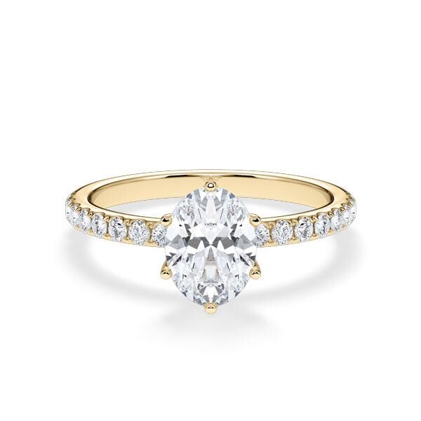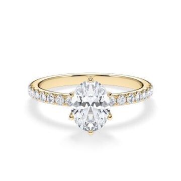 Entdecke den Hollywood Ring Classic Oval aus Gelbgold. Bei diesem exquisiten Ring rückt der atemberaubende Lab-Grown Diamant im Oval-Schliff als Center-Stein in den Mittelpunkt. Umgeben von echten Diamanten, die an den Seiten funkeln, verleiht dieser Ring jedem Look eine grandiose Note.