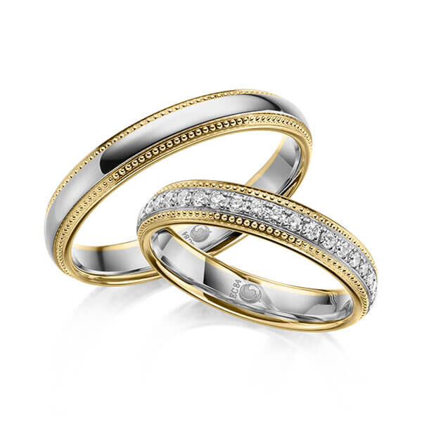 Paar Trauringe / Eheringe Gelbgold 585/- Platin 600/- zus. 0,285 ct, tw, si - RU-1622-10