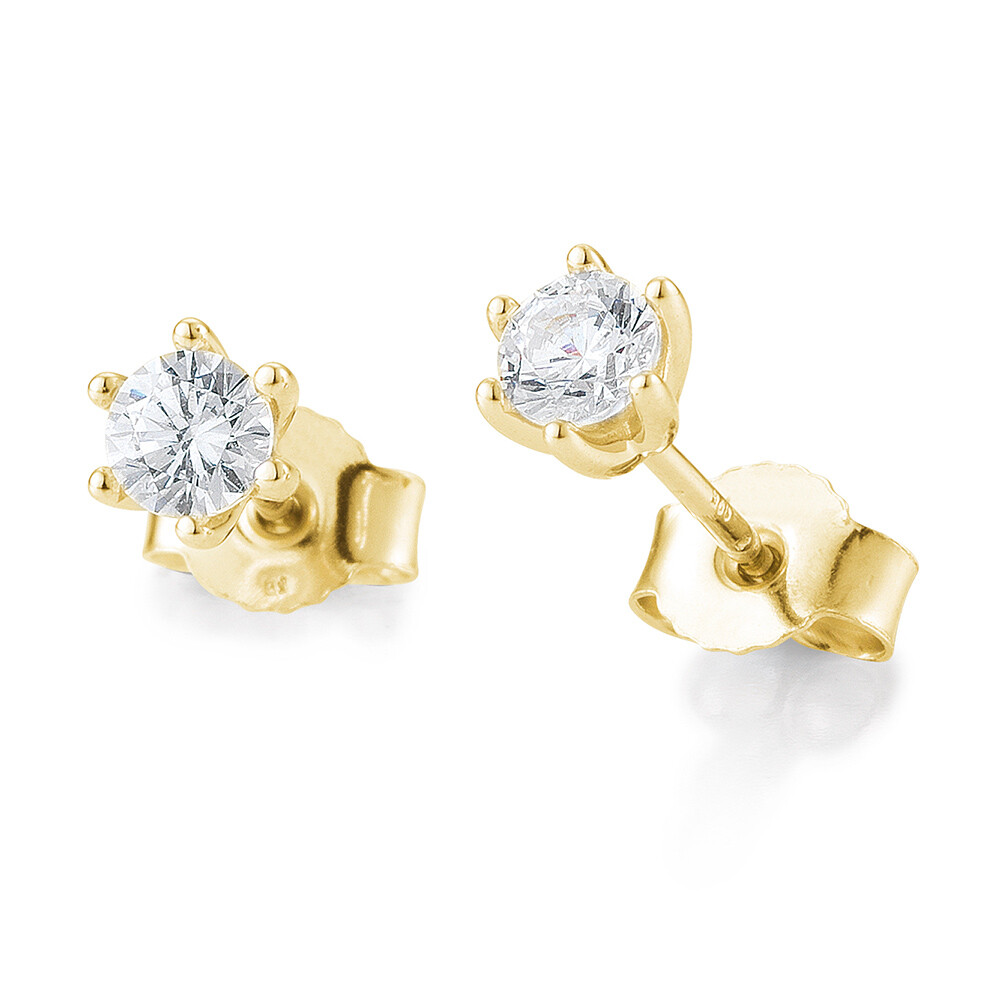 Wunderschöne Ohrstecker aus Gelbgold mit einem Solitär gehalten von 6 Krappen. Poussettmutter und Stift. Abbildung zeigt Variante mit 0,5 ct.