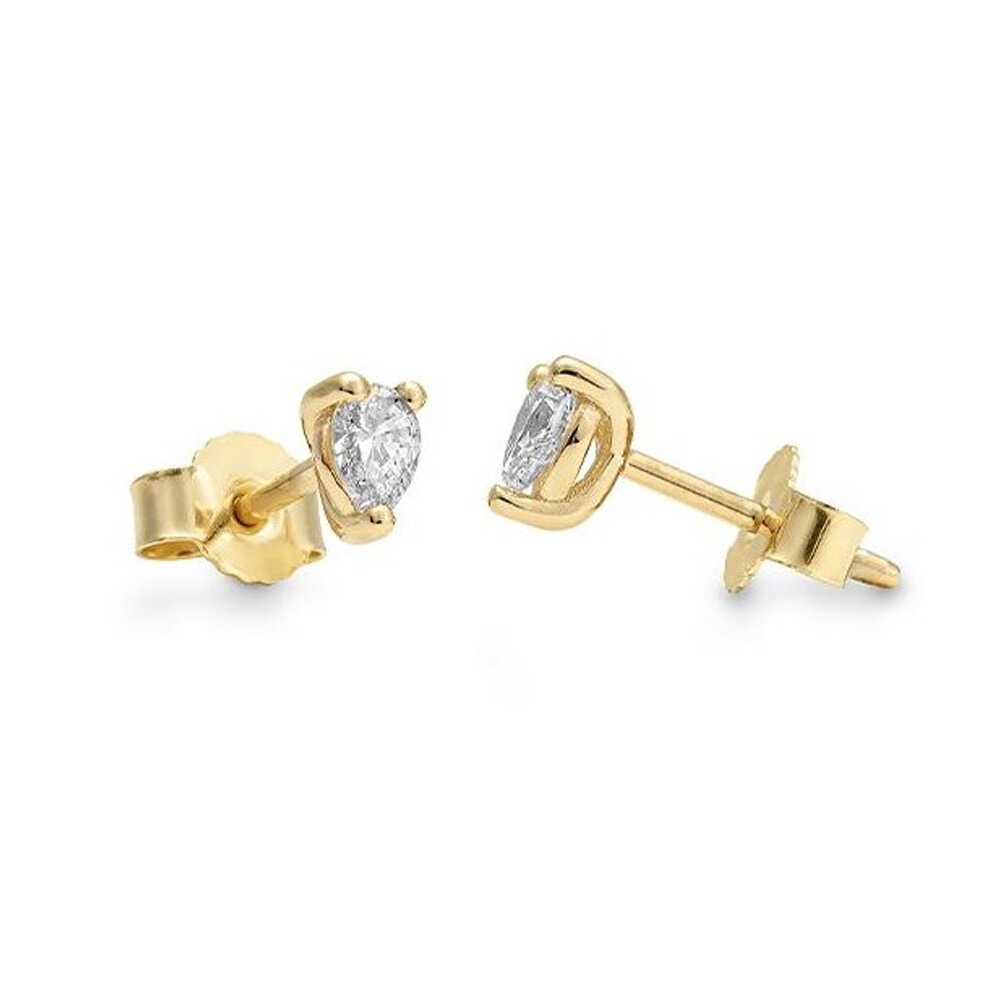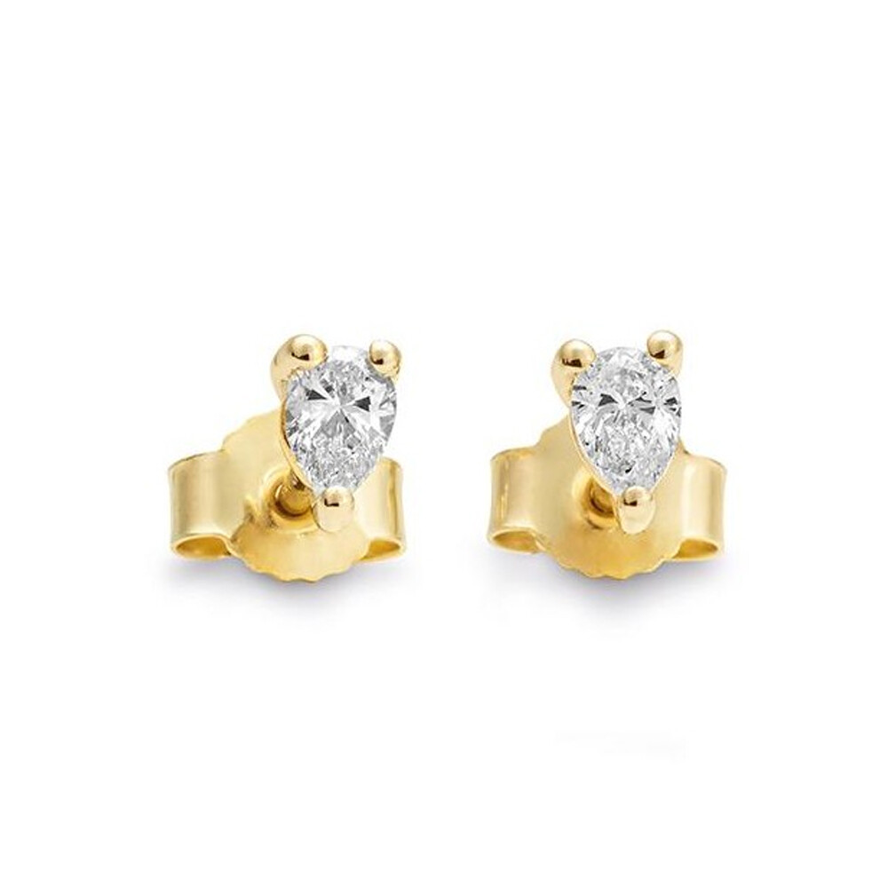 Wunderschöne Ohrstecker aus Gelbgold mit einem Diamanten im Tropfenform in einer Krappenfassung. Poussettmutter und Stift.