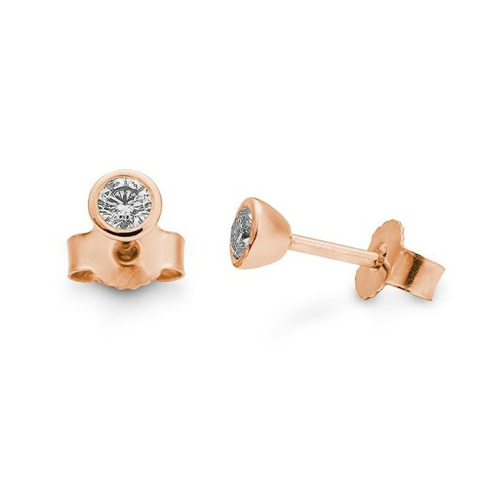 Wunderschöne Ohrstecker aus Rotgold mit einem Diamanten im Brillantschliff in einer Zargenfassung. Poussettmutter und Stift.