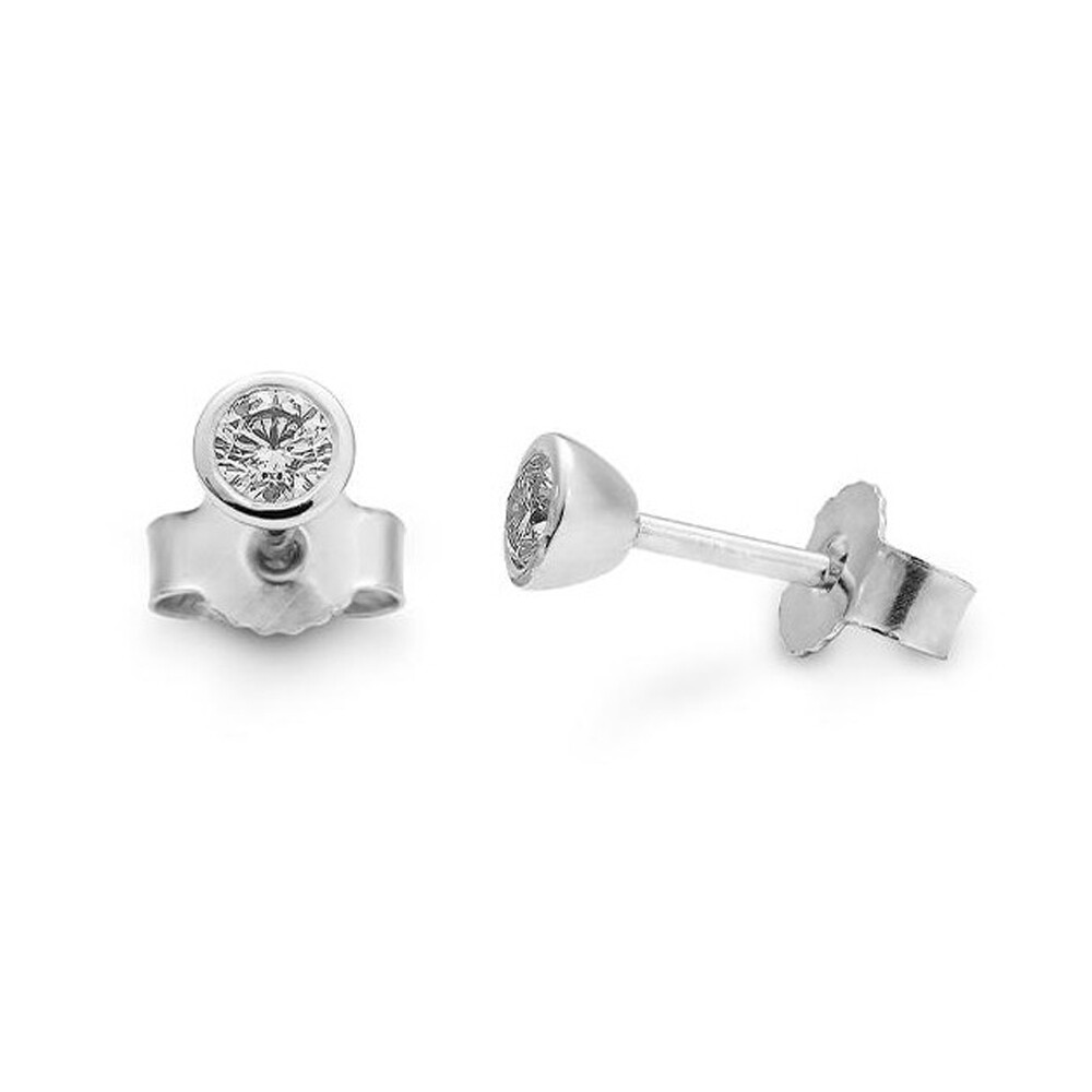 Wunderschöne Ohrstecker aus Weißgold mit einem Diamanten im Brillantschliff in einer Zargenfassung. Poussettmutter und Stift.