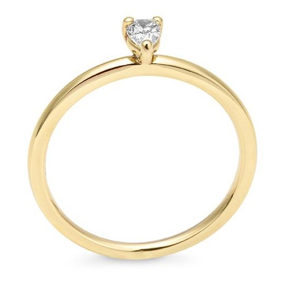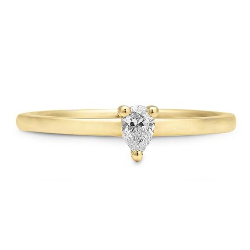Ein wunderschöner Ring aus Gelbgold mit einem funkelnden Diamanten in Tropfenform. Der strahlende Diamant wird von 3 Krappen sicher gehalten.