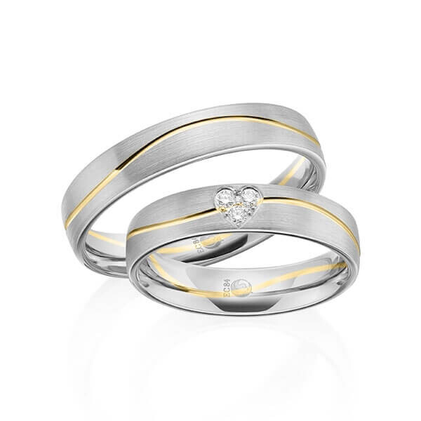 Paar Trauringe / Eheringe Graugold dunkel 375/- Gelbgold 375/- zus. 0,075 ct, tw, si - RU-1603-15