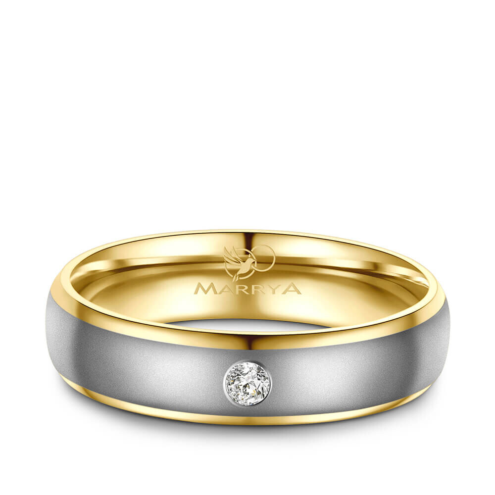 Hochwertige Trauringe / Partnerringe Edelstahl mit Gelbgoldplattierung. Der Damenring besitzt einen funkelnden, eingeriebenen Zirkonia. Diese wunderschönen Bicolor Edelstahlringe sind hochwertig verarbeitet und sitzen durch ihre Bombierung (an der Ringinnenseite abgerundet) sehr bequem am Finger.
