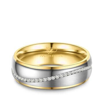 Das Modell ES-22 sind Trauringe oder auch Partnerringe aus Edelstahl mit erstklassiger 14K IP Goldbeschichtung. Die Ringe sind auf einer Seite hochglanzpoliert, auf der anderen Seite matt gebürstet. Auch die Wellenfuge ist in matt gehalten. Der Damenring ist umlaufend mit mehreren 5A-Zirkonia mit Hochglanzeffekt veredelt. Diese werden in einer Kanalfassung sicher gehalten. Die wunderschönen Bicolor Edelstahlringe sind hochwertig verarbeitet und sitzen durch ihre Bombierung (an der Ringinnenseite abgerundet) sehr bequem am Finger.