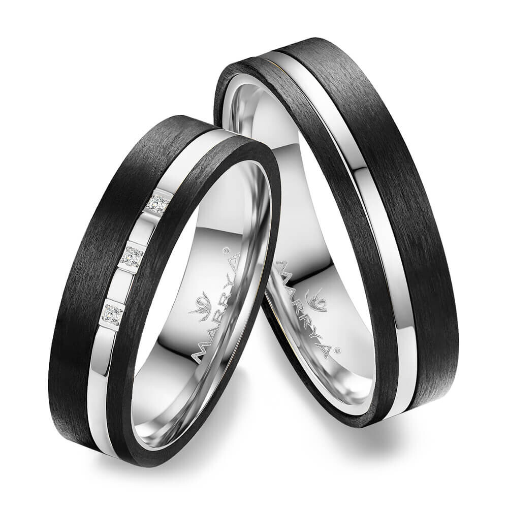 Trauringe Partnerringe Weißgold Carbon Marrya CA-11