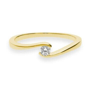 Ein geschwungener Verlobungsring aus Gelbgold mit einem strahlenden Brillanten veredelt. Zart und wunderschön bringt dieser faszinierende Ring Schwung an Ihren Finger. Auch als Geschenk zum Jahrestag, Geburtstag oder zu Weihnachten bereitet dieses Modell große Freude!